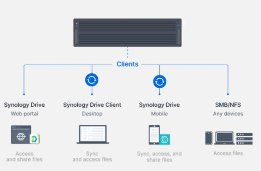 • Synology Drive 專屬私有企業(yè)云盤(pán),可通過(guò)桌面客戶端和移動(dòng)應(yīng)用程序,實(shí)現(xiàn)遠(yuǎn)程數(shù)據(jù)存取、同步、以及靈活的文件還原和備份。 在不同平臺(tái)和設(shè)備之間同步數(shù)據(jù),并使用移動(dòng)應(yīng)用程序、桌面客戶端和網(wǎng)頁(yè)界面存取文件。設(shè)置精細(xì)的文件和文件夾訪問(wèn)和共享權(quán)限。在 Synology Drive 管理控制臺(tái)中,能輕松維護(hù)文件并通過(guò)詳細(xì)記錄跟蹤文件共享設(shè)置更改。