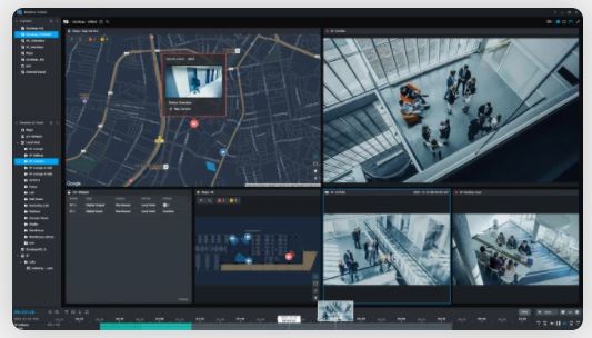 • 與 Google 地圖和 OpenStreetMap 整合,更輕松地監(jiān)控多地點(diǎn)部署,當(dāng)檢測(cè)到事件時(shí),可直接在多樓層、多點(diǎn)地圖上瀏覽影像,快速掌握各種監(jiān)控狀態(tài)。